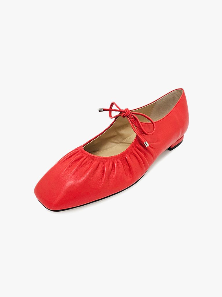 아이리스 리본플랫 / 무광가죽 오렌지레드
