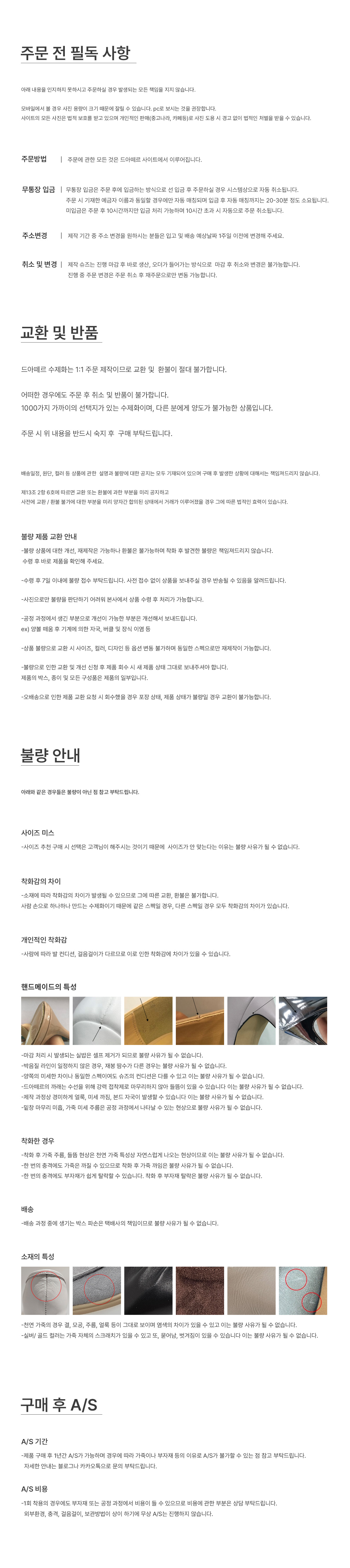 ○ 특히 크랙 가죽의 경우 양발 크랙 모양이나 컨디션이 다를 수 있으며 해당 부분 상세페이지 하단에 각 기재되어 안내되어 있습니다.